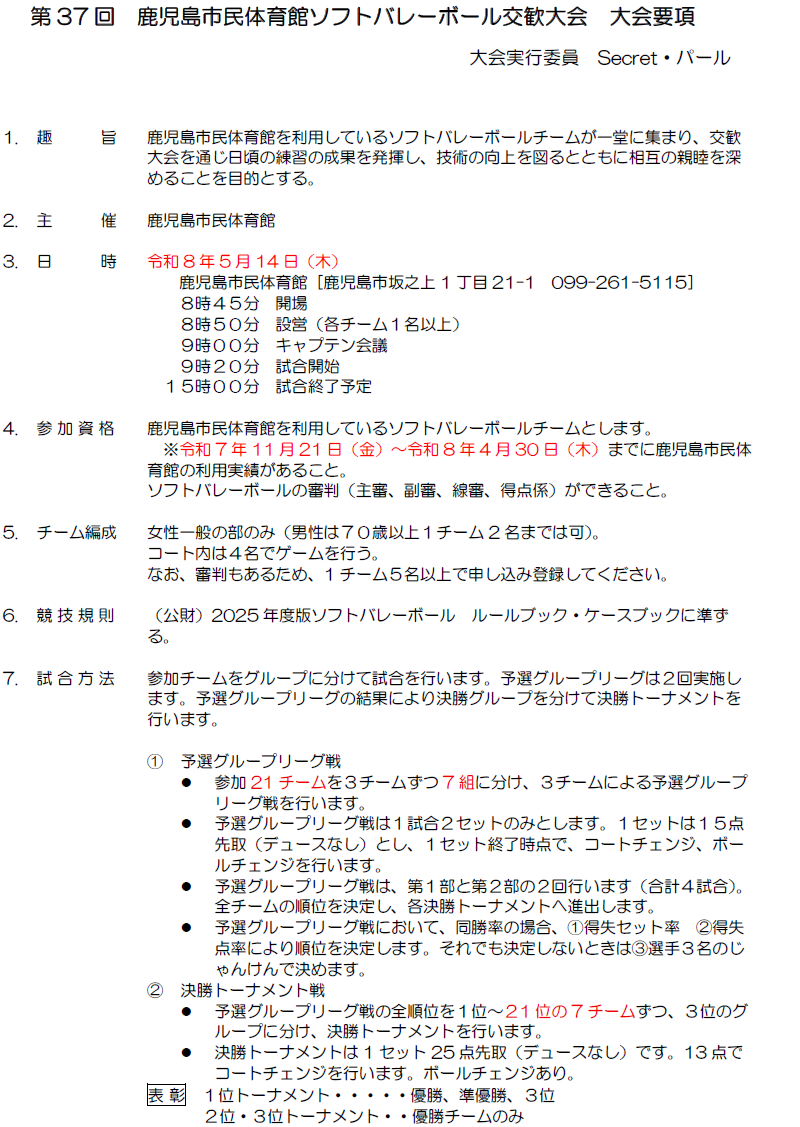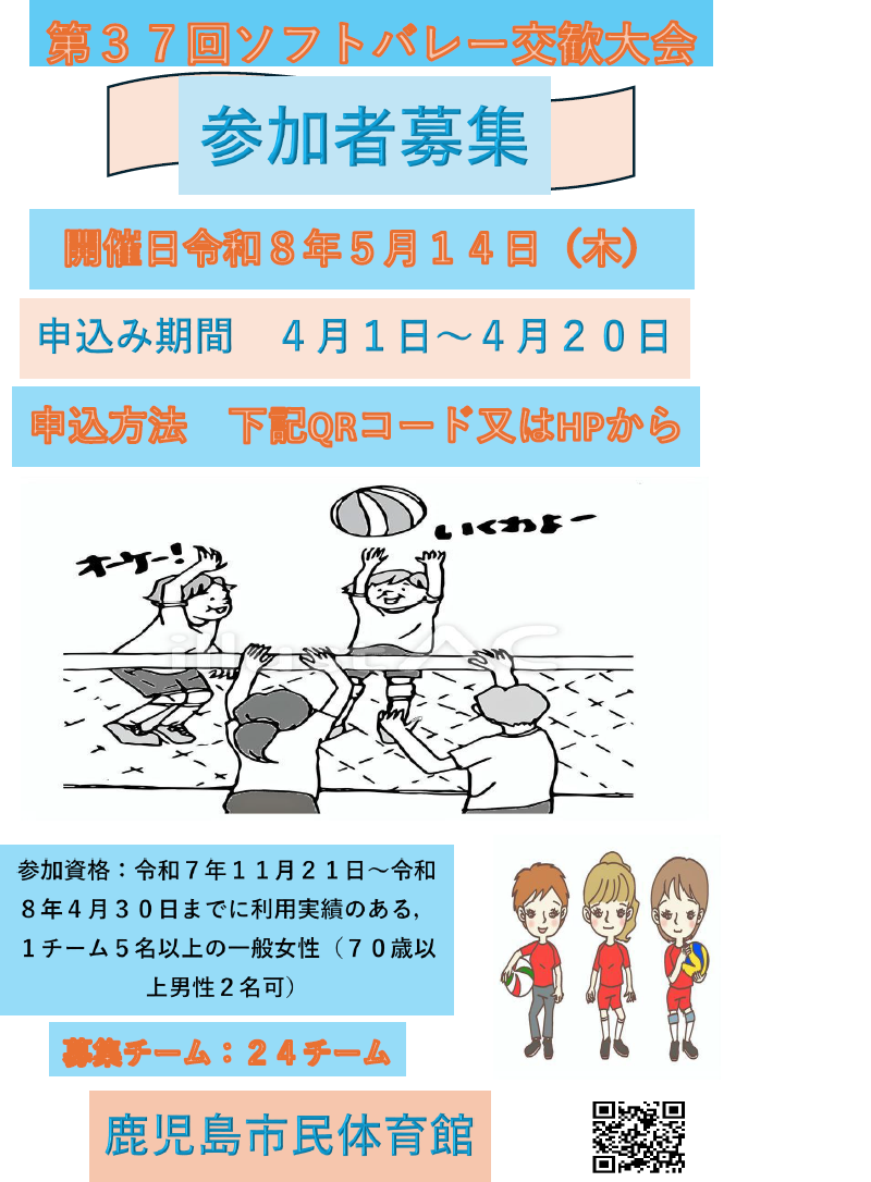 ソフトバレー第37回大会要項はこちらからもダウンロードできます。
