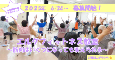 60歳以上のシニアの方を対象としたフィットネス教室です。定期的な運動習慣は、健康への第1歩です♪