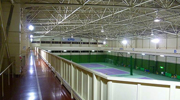 テニスコートの上方に設けた、空中インドアトラックです。