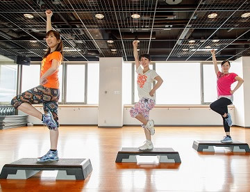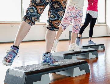 ステップ台を使用して昇降運動の基本をマスターする膝や腰にやさしいクラスです。